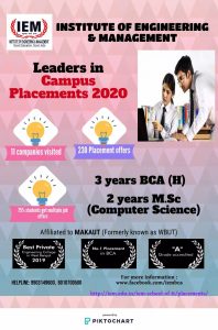 Admission open for 2020 session in BCA and M.Sc(Computer Science) in Institute of Engineering & Management (IEM), Kolkata.