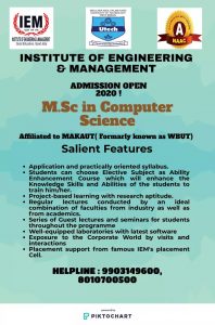 Admission open in BCA and M.Sc ( Computer Science) of Institute of Engineering & Management (IEM), Kolkata for 2020 Session.