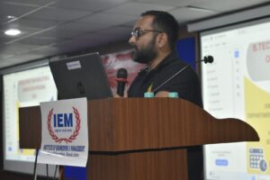Mr. Sourav Chakraborty, Founder & CEO, SCONTO, Alumnus of IEM Kolkata has taken a session during the Induction & Orientation Program of B.Tech. 1st year students on 3rd July 2024 at IEM Management House.
