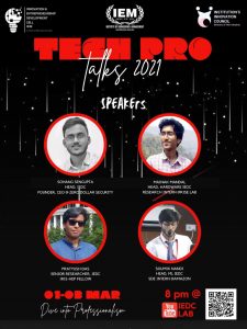 Tech Pro Talks was organized by IEM IEDC (Innovation and Entrepreneurship Development Cell), Funded by DST, Govt. of India, in association with Institutions Innovation Council, IEM-IIC on March, 1-3, 2021
