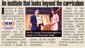 Press Release regarding 1st and 3rd rank of IEM-UEM in West Bengal Private Engineering College Rankings by Times of India