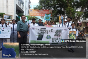 The BBA department of IEM organized Campus to Campus Green Walk, on 27th September 2023. It was an awareness program organized to create awareness about the environment among the peoples. Students of the BBA Department informed people by putting up a green campaign with posters giving significant messages about the growing rate of pollution, global warming, and other issues. All the students walked from the IEM Ashram building to the IEM Management House and then again came back to the IEM Ashram Building.
