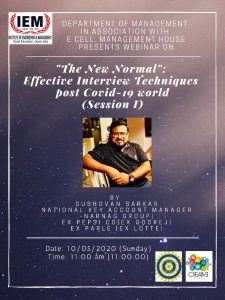 Department of Management in association with E Cell, Management House has arranged a Webinar on this ascertaining issue on “The New Normal”: Effective Interview Techniques post Covid-19 world.