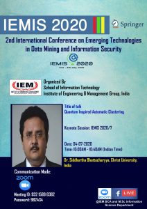 Dr. Siddhartha Bhattacharyya, Christ University, Bangalore, ACM Distinguished Speaker delivered his keynote speech in IEMIS 2020.