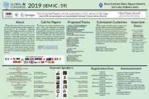 Global AI Congress 2019, a leading event in the area of Artificial Intelligence will be held at Bose Institute, Salt Lake, Kolkata, India during September 12-14, 2019, in association with Computer Society of India (CSI). Accepted and presented papers will be published in SCOPUS indexed Springer’s AISC (Advances in Intelligent Systems and Computing) book series. Some of the accepted papers will be published in Springer’s Scopus indexed, UGC approved journals.