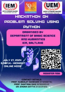 Department of Basic Science & Humanities, IEM Kolkata in association with S4DS IEM students chapter had organized an online HACKATHON on Problem Solving Using Python.