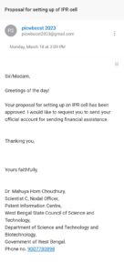 IEM Kolkata under UEM Kolkata got funding and mentorship support from the Patent Information Centre, West Bengal State Council of Science and Technology, Department of Science and Technology and Biotechnology, Government of West Bengal for setting up IPR Cell.