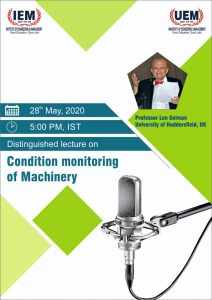 IEM-UEM organised a Distinguished Foreign Lecture on Topic : ” Condition Monitoring of Machinery” by *Prof. Len Gelman* University of Huddersfield, UK on *May 28th, 2020 5:00 PM IST .