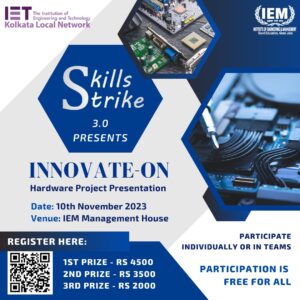 Electrical Engineering, Electrical & Electronics Engineering, and IET-IEM Student Chapter are extremely pleased to announce that INNOVATE-ON, as a part of our annual flagship event SkillsStike 3.0, was organized on 10th November 2023.Interested students from department has participated in this event.