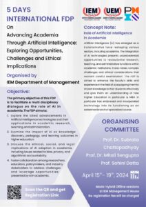 6 Days International FDP on ” Work Life Balance” in association with AIMS, IEM Department of Management will organised from April 15 to April 19, 2024 in Hybrid Mode.The Registration Form Link for Participation is below: