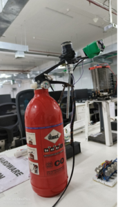 This is a smart fire extinguisher that can be triggered automatically from any location using the help of internet. Preventing the spread of fire.