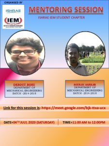 *ISHRAE IEM Student Chapter* Mentoring session of 188 society members by two of our alumni, *Mr. Debdut Bosu* and *Mr. Sourav Sarkar*.