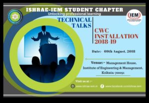 Today i.e. 9th August 2018, ISHRAE IEM student chapter with help of ISHRAE Kolkata is hosting the new CWC installation with two technical talk based on electrical and mechanical for society year 2018-19.
