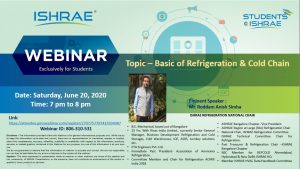 60 student members of IEM Kolkata are registered for today’s scheduled ISHRAE student customised webinar from 7pm to 8pm on Basic of Refrigeration and Cold Chain. It will help our members to explore more cold chain industry. Also, it will give complementary Industry learning as same mapped with our regular and elective subjects of syllabus.