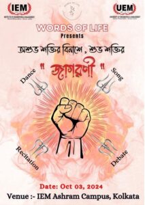 The Department of Computer Application and Science, under the initiative “Words of Life,” organized Jagoroni on October 3, 2024, an event that powerfully portrayed the struggles women endure daily through a compelling theatrical drama. More than a cultural celebration of Goddess Durga, Jagoroni aimed to awaken the audience’s awareness of societal injustices faced by women. The event featured four segments—dance, song, recitation, and drama—each contributing to the impactful narrative. A prize distribution ceremony followed, recognizing the outstanding talents of participants in each category and celebrating their artistic achievements.