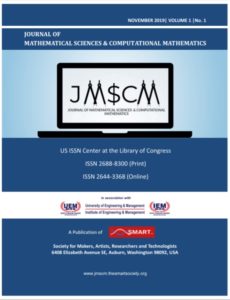 The first print issue of the Journal of Mathematical Sciences & Computational Mathematics(JMSCM) is published from SMART Society, USA with ISSN No 2688-8300 (Print)