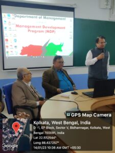 The MDP on “Technical Analysis for beginners” organized by the Department of Management, IEM on Saturday, January 14, 2023, concluded very successfully. Mr. Manoj Dalmia founder of the Proficient Group, the well-known financial services company, was the Chief Guest. Both President sir and Director sir of IEM joined the proceedings briefly and encouraged the participants. The MDP was conducted by Prof. P.K. Banerji and Mr. Saugata Ghosh between 10.30 am. and 5 pm. with lunch and tea breaks.