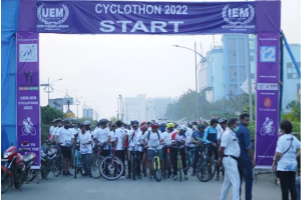 On the 6th of March, 2022 University of Engineering & Management, Kolkata in collaboration with Institute of Engineering & Management & CNG, in association with T2 hosted the event Cyclothon – a cycle marathon with a motivation to celebrate the spirit of womanhood, commemorating International Women’s Day. The ride to ‘break the bias’ started from the University Gate en-route Biswabangla Gate and Novotel crossing, with an approximate count of 300 exuberant cyclists, in two categories of 10KM-Courage Ride and 20KM-Warrior Ride. The peep of the day witnessed the merriment and zest of happy riders, breaking through the monotony of life and feeling the gush of fresh morning air which was followed by a brief felicitation ceremony wherein finishers were awarded medals to honor their ride for the cause.