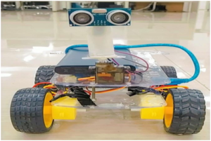 The obstacle avoiding automatic car, after the power supply is connected and switched on, starts moving forward until it detects an object in front of it, when it stops. It checks the distance to it’s right and left. Whichever is greater, it turns towards that direction and starts moving forward again. It repeats these steps until it completely moves out of the obstacle course.