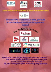 Team NIVAS of IEM ISHRAE Model student chapter has surpassed many top universities and other renowned Institutes in the Solar Decathlon India  Net Zero Energy water design competition and has eventually made it to finals in  the category  of Multi-housing Family.Heartiest Congratulations to all the members, faculties and mentors who were associated with Team NIVAS.Also a heartfelt thanks to Team Nivas Project Partner Mahindra Life spaces and our Industry Partners D2O, CYPESpain, Inner Engineering, WeGot, Arosia, Inoviea, Asahi, Avrio Energy, Tech Mech Services and Applex.in.