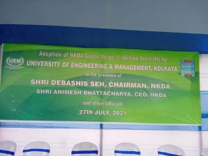 The IEM-UEM group, takes the responsibility of the proposed plantation of 1000 Himsagar mango , neem and banyan trees over the stretch of 1.3 acres of land in Green verge 1, Action area IIIB. The management plans to involve faculty members and students to take care of the plants and maintain them. The main purpose behind this initiative is to help the self-help groups once the trees bear fruits and at the same time creating natural habitat for different birds and other living things. Land Adoption and Tree plantation ceremony was organized by NKDA and IEM-UEM Group on 27th July 2021.
