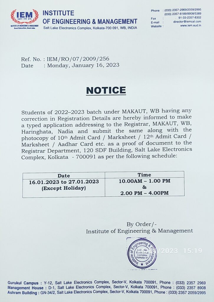 Notice for correction in registration details 2022